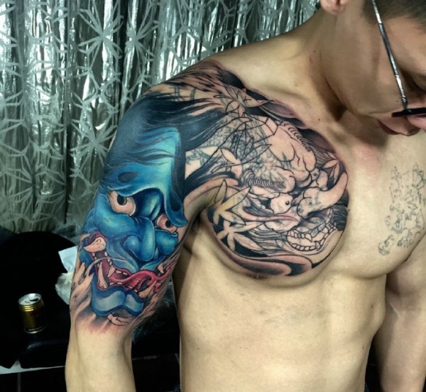 个性豪放的彩色半甲般若纹身图片
