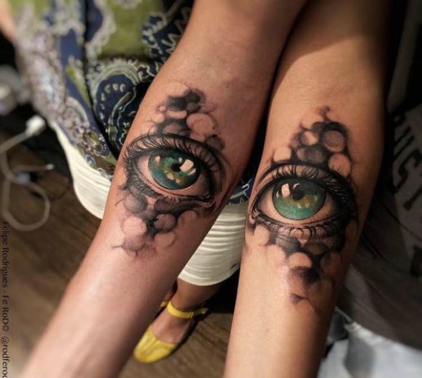 炯炯有神的3d眼球手臂情侣纹身图片