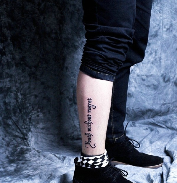 小腿外侧个性英文纹身图片很清晰