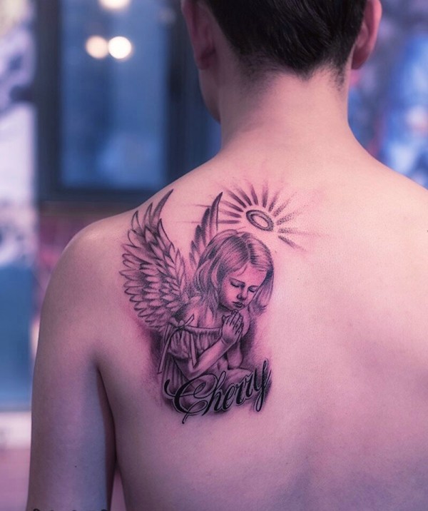 默默祈祷着的天使小女孩纹身图片