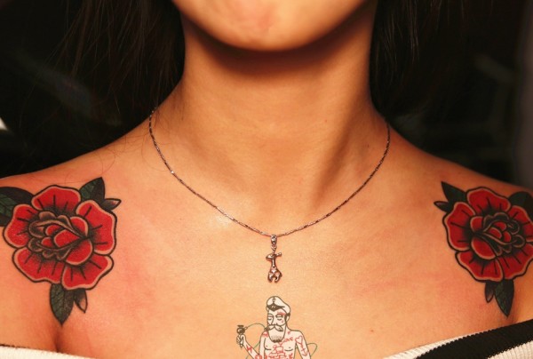 女生肩花纹身_15张女性双肩对称的肩花纹身图案作品图片