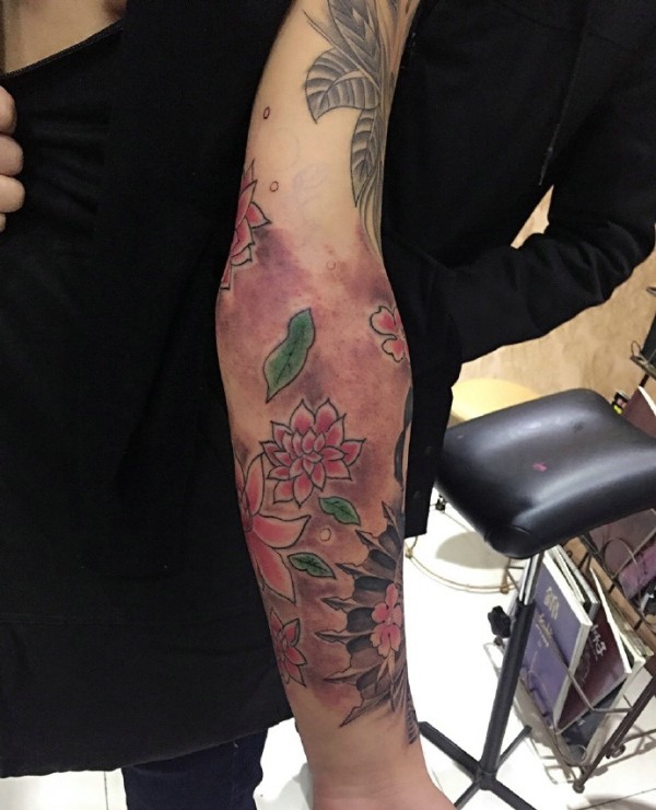 手臂莲花蛇纹身图案_臂部纹身图案大全_纹身图吧
