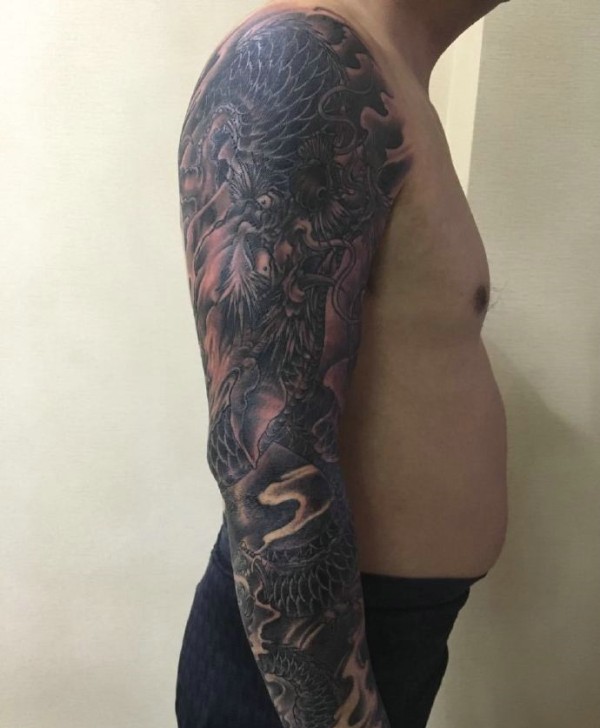 日式手彫刺青作品—半甲龙很感谢客户认可手彫刺青,手彫是日本纹身的手工雕刻技术,时间可以追溯到日本17世纪的江户时代。19世纪,手彫技术被日本黑帮挪用,被用作入会仪式,象征着从此就是江湖中人。在日式传统
