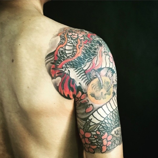 日式手彫刺青作品—半甲龙很感谢客户认可手彫刺青,手彫是日本纹身的手工雕刻技术,时间可以追溯到日本17世纪的江户时代。19世纪,手彫技术被日本黑帮挪用,被用作入会仪式,象征着从此就是江湖中人。在日式传统