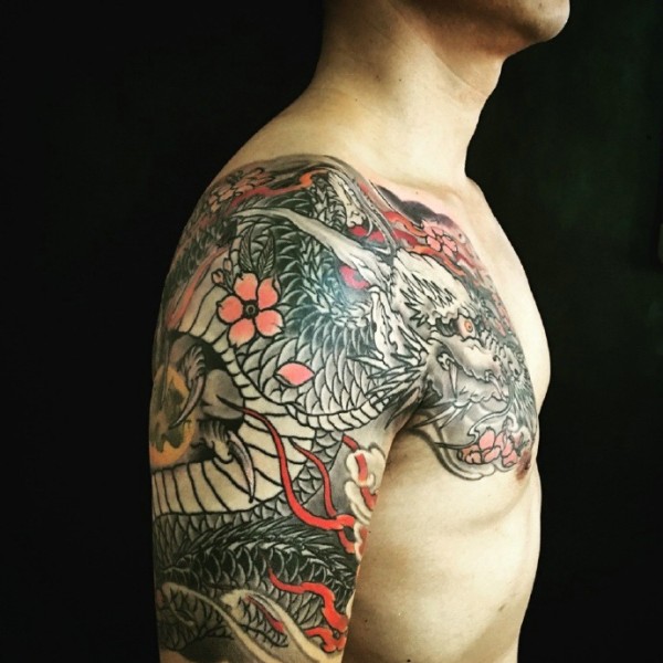 日式手彫刺青作品—半甲龙很感谢客户认可手彫刺青,手彫是日本纹身的手工雕刻技术,时间可以追溯到日本17世纪的江户时代。19世纪,手彫技术被日本黑帮挪用,被用作入会仪式,象征着从此就是江湖中人。在日式传统