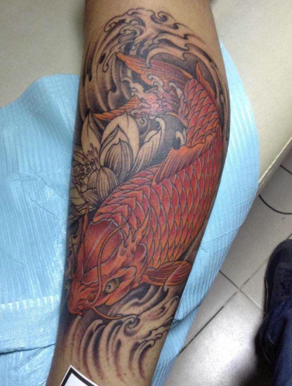 传统鲤鱼花小腿纹身_腿部纹身图案大全_纹身图吧
