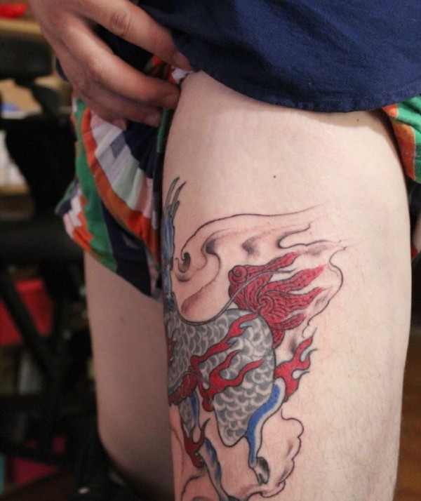 传统花腿纹身--18张传统风格的大花腿纹身图案作品