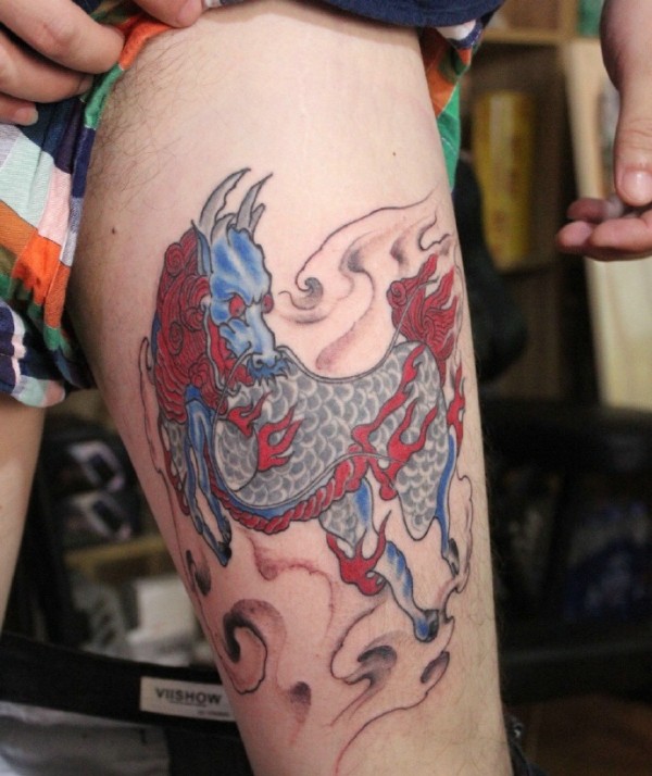 老传统彩色小麒麟纹身图片