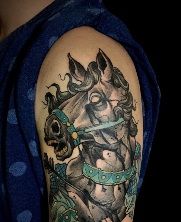 大臂四处奔跑的小马纹身图片