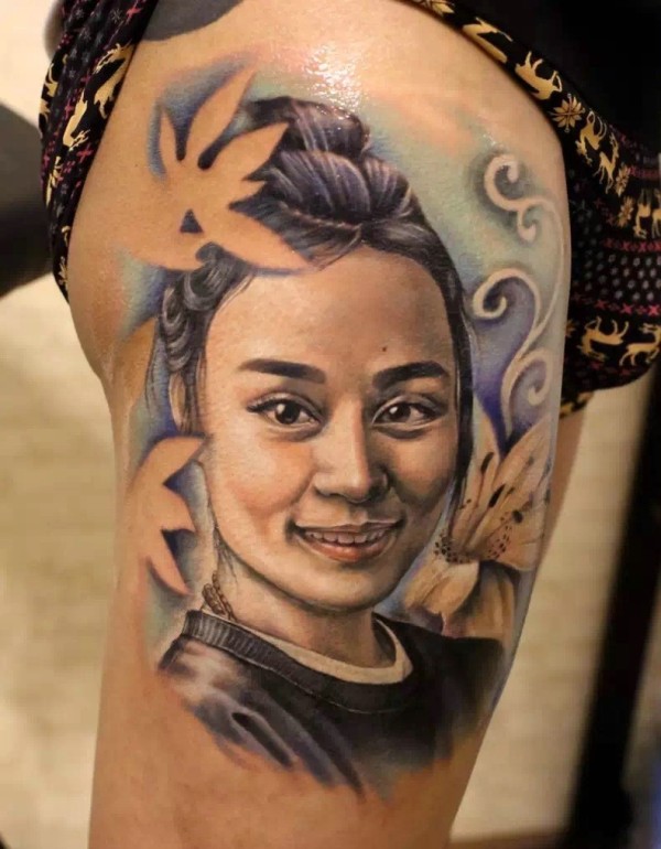 清纯女孩腿上可爱肖像纹身图片_肖像纹身图案大全_纹身图吧