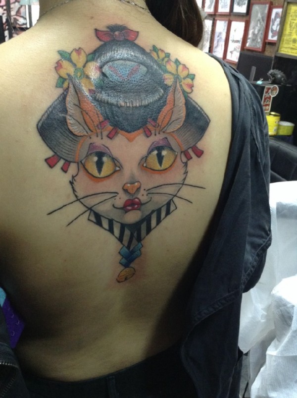 大眼萌萌的大花猫头像纹身图片