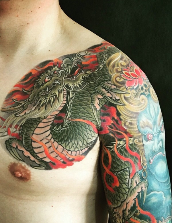 日式手彫刺青作品—半甲龙很感谢客户认可手彫刺青,手彫是日本纹身的手工雕刻技术,时间可以追溯到日本17世纪的江户时代。19世纪,手彫技术被日本黑帮挪用,被用作入会仪式,象征着从此就是江湖中人。在日式传统