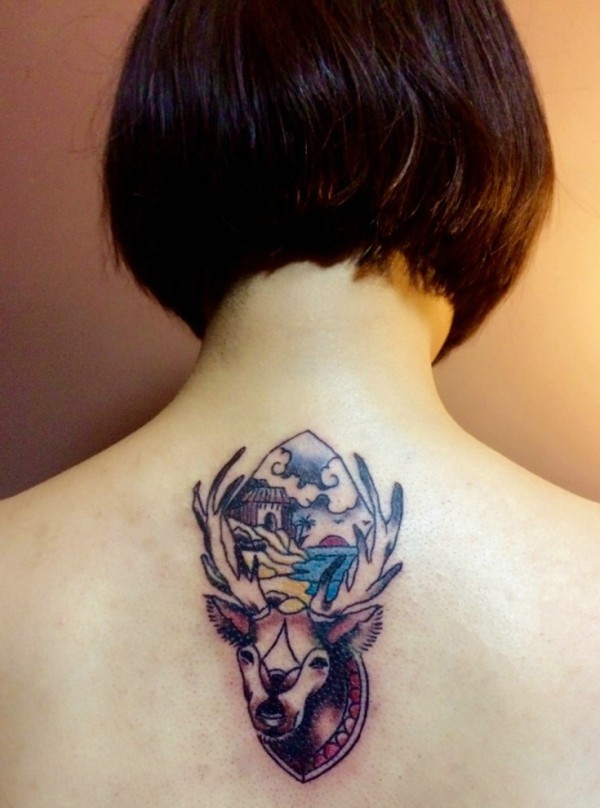 女生背部有着与众不同的图腾纹身图片