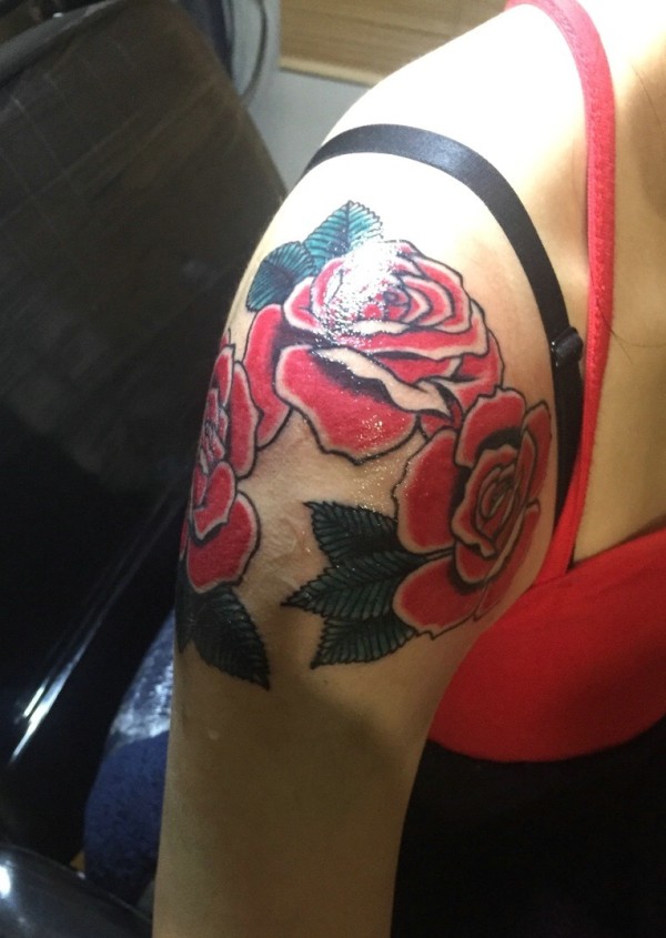 女生肩花纹身_15张女性双肩对称的肩花纹身图案作品图片