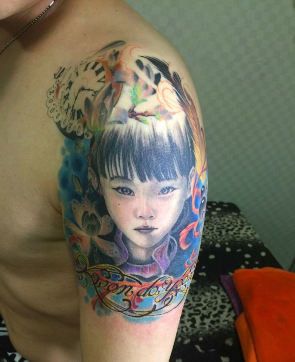 女性肩部肖像刺青_肖像纹身图案大全_纹身图吧