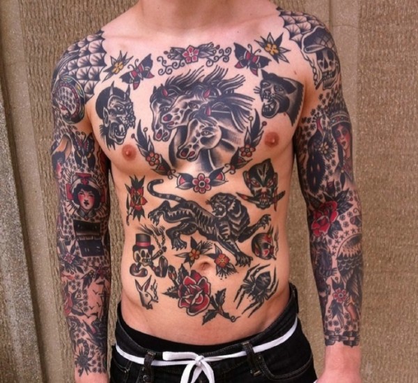 一套非常精彩有趣的花胸纹身图案