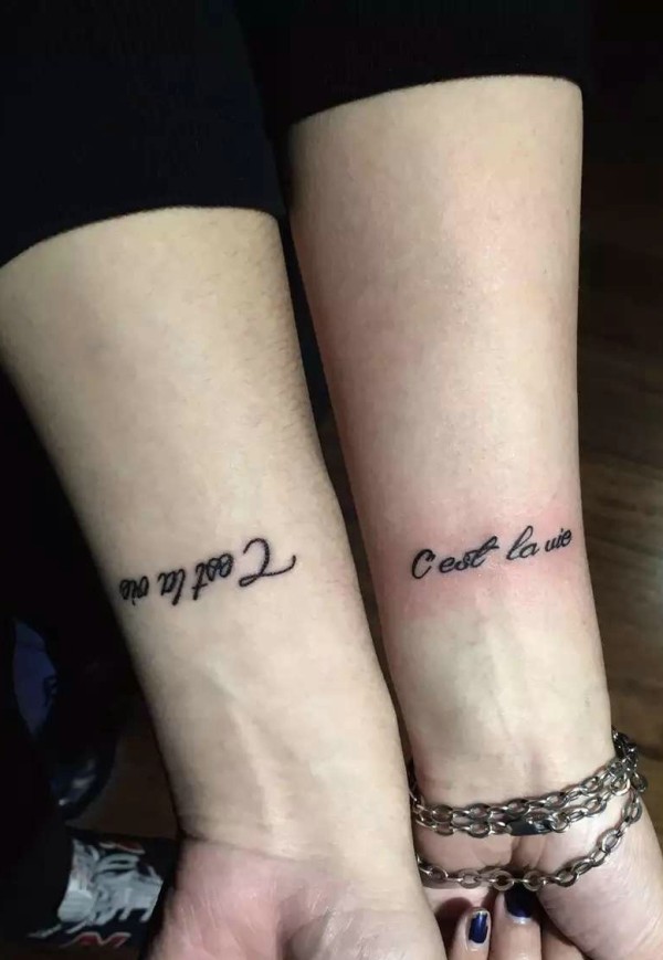 时尚情侣有着小清新英文手臂纹身图片