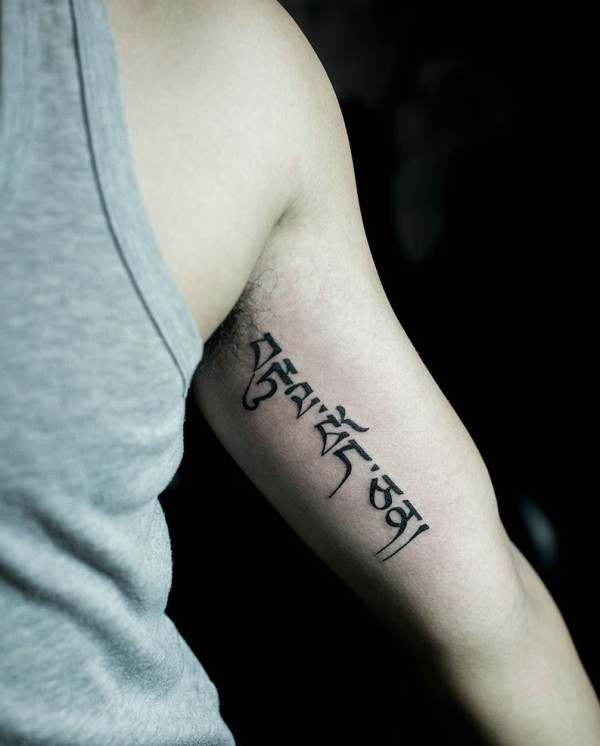 隐藏在手臂内侧的梵文纹身图片