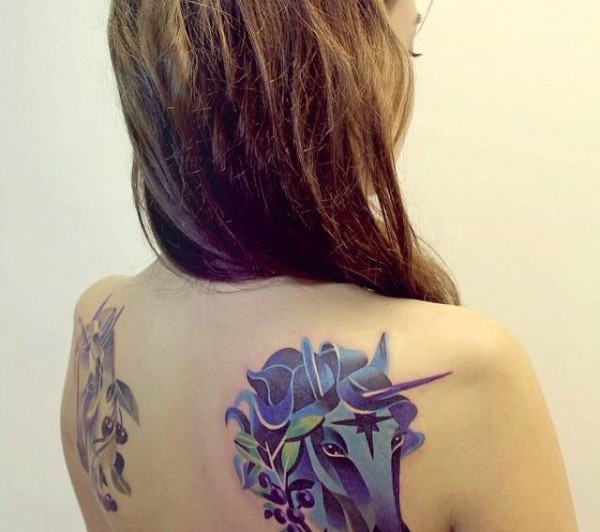 女生后颈部性感又可爱的小清新纹身图案