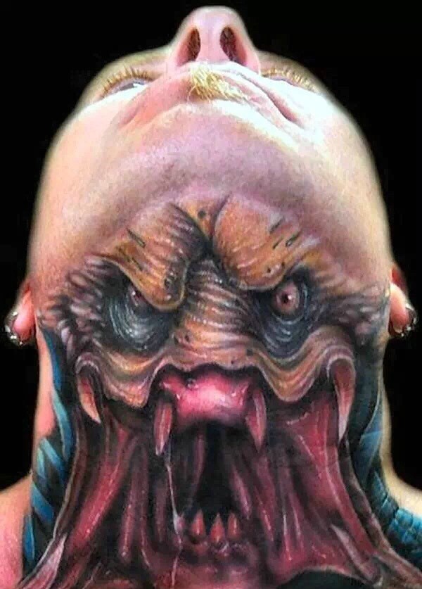 颈部上的另类纹身图案简直无法自拔