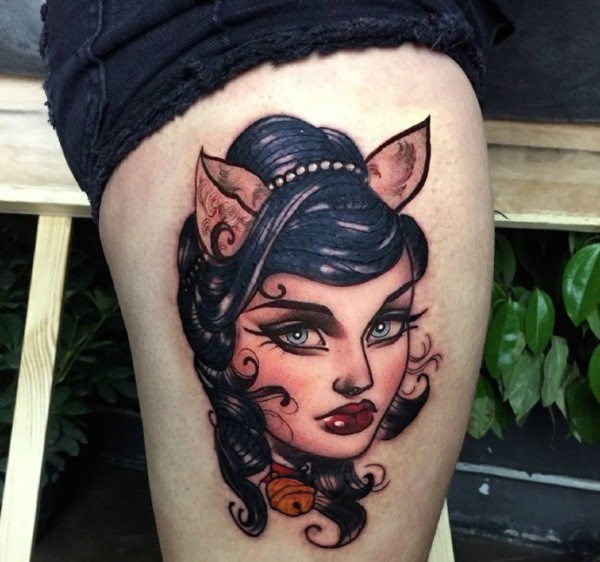 清纯女孩腿上可爱肖像纹身图片_肖像纹身图案大全_纹身图吧