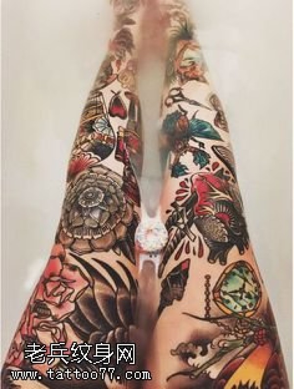 传统花腿纹身--18张传统风格的大花腿纹身图案作品