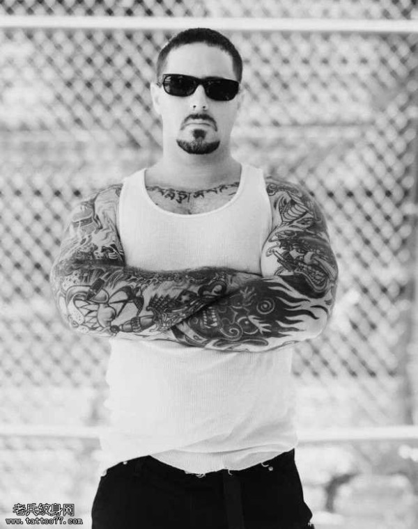 欧美花臂纹身_22张霸气黑灰欧美大黑花臂纹身图案作品图片