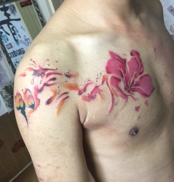 后肩唯美花藤英文图案图片_植物纹身图案大全_纹身图吧