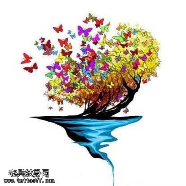 手稿彩色树纹身图案