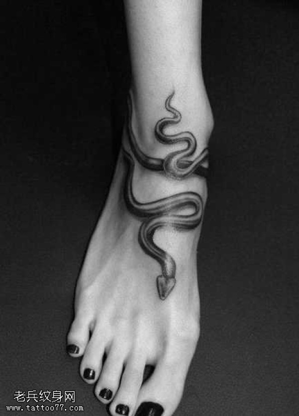 脚部蛇纹身图案