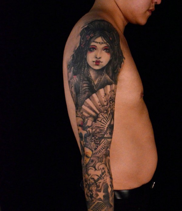 女性人物纹身图案 男生大臂纹身女性人物纹身图案