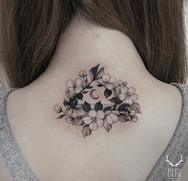后肩上的花月亮纹身图案