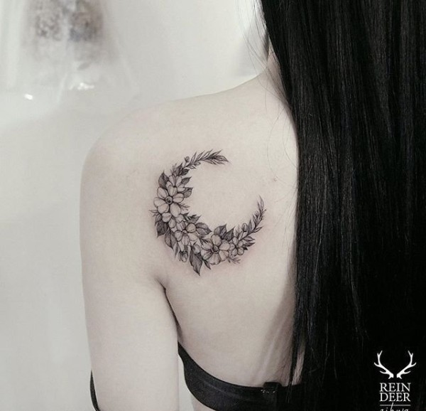 后肩上的花月亮纹身图案
