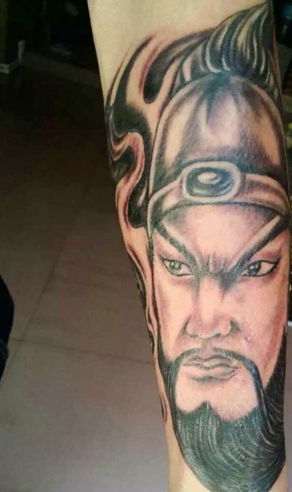 帅气十足的手臂经典关公纹身图案