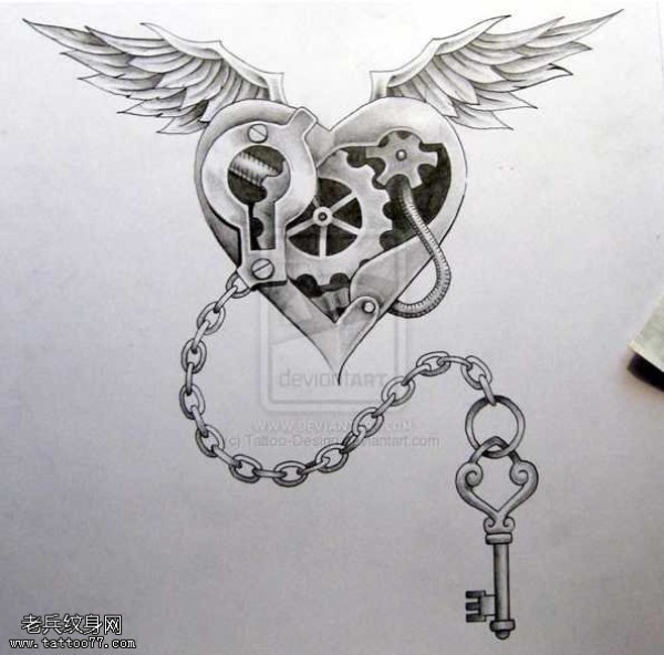 爱心翅膀锁纹身图案