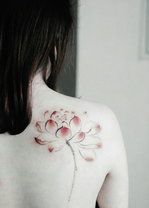 女生背部莲花纹身图案清新可爱娇俏可人