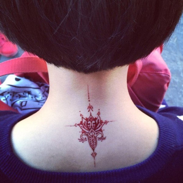 个性女生后颈处的个性图腾帅气十足