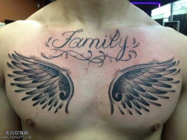 胸部个性翅膀纹身图案