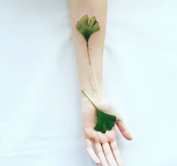 一模一样的手臂3d一片绿叶纹身刺青