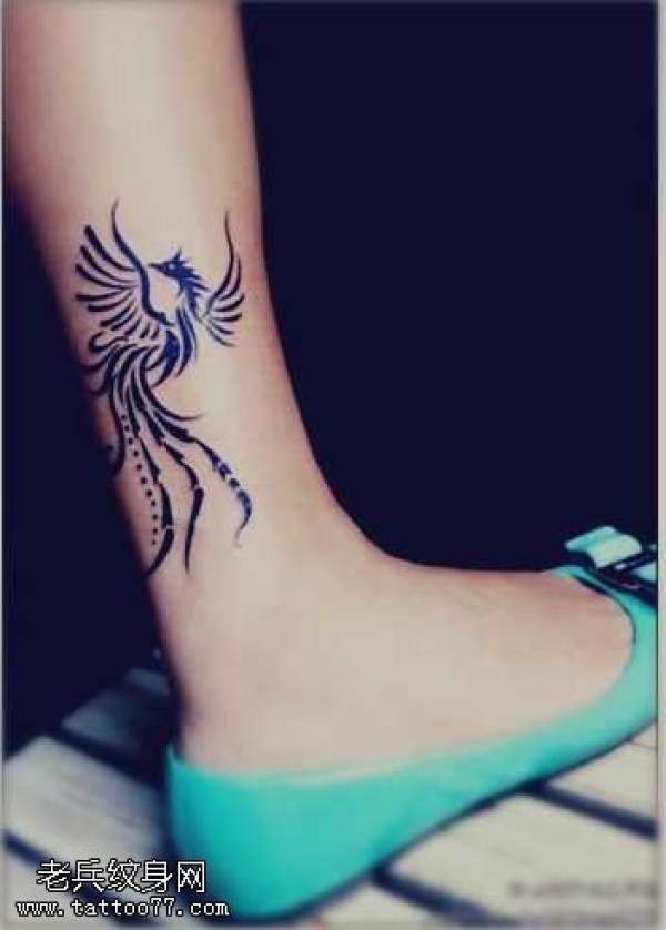 腿部凤凰图腾纹身图案