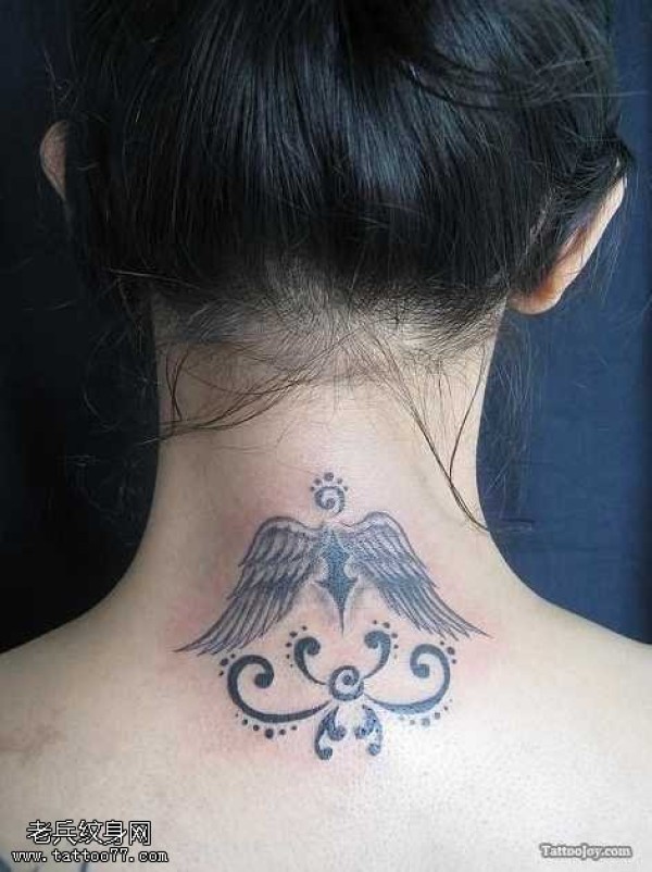 后颈部纹身小图--9张女生脖子后颈处的简约纹身图案
