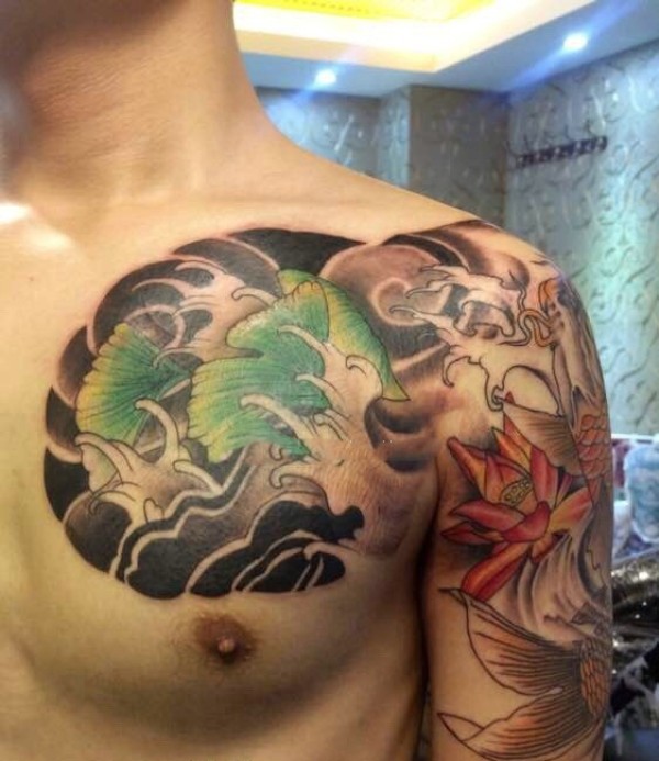 莲花与红鲤鱼结合的半甲纹身图案