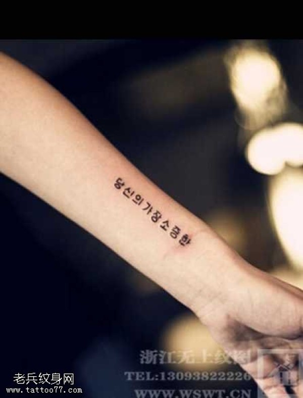 手臂个性韩文纹身图案