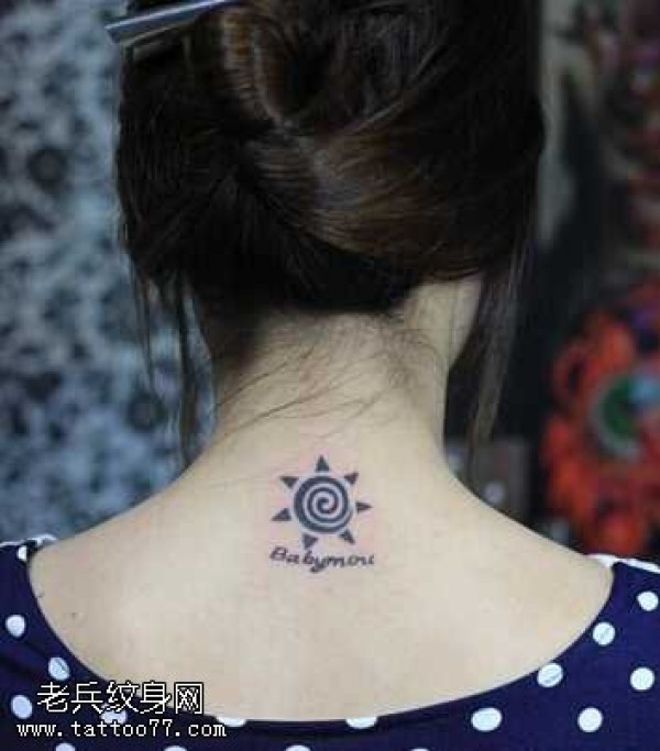 背部小巧太阳图腾纹身图案