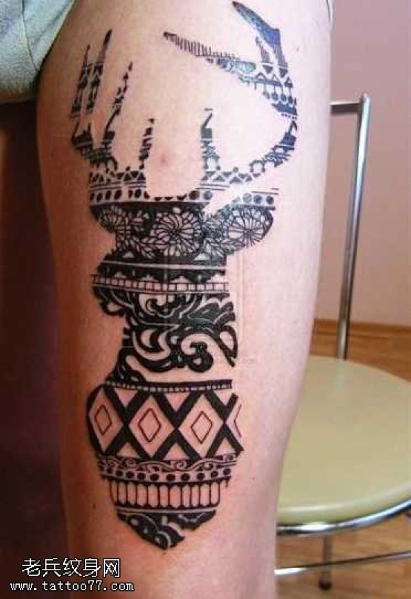 花腿纹身--一组大黑腿纹身图案作品欣赏