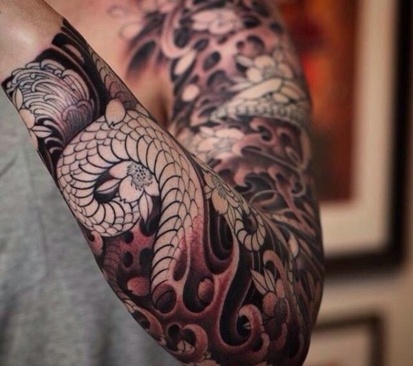 手臂莲花蛇纹身图案_臂部纹身图案大全_纹身图吧