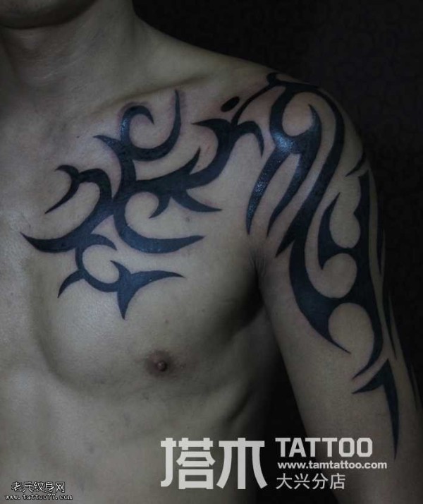 男性超帅气的黑色半甲部落图腾纹身图案