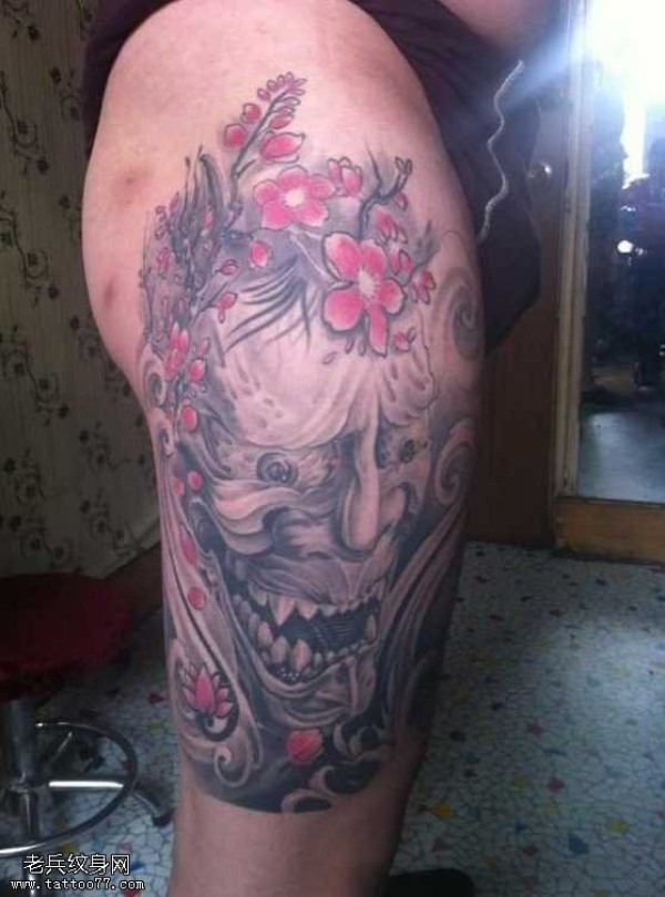 传统花腿纹身--18张传统风格的大花腿纹身图案作品