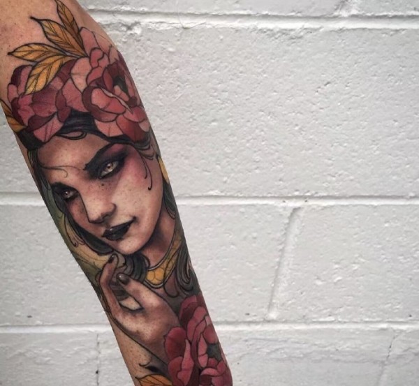 逼真的超现实主义花纹身图案来自纹身师莫拉莱斯