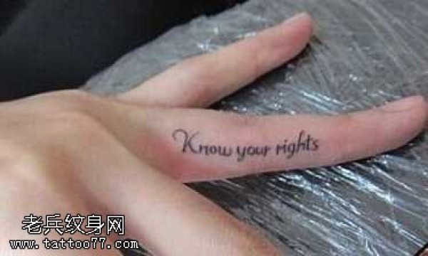手指简约清新英文纹身图案